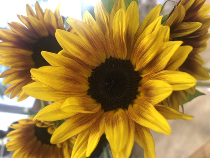 ひまわり(サンリッチレモン)/バラ(バンビーノホワイト、フェアビアンカ、アバランチェ、ジリアン、カタリナ、ラ・マリエ)/ルネッサンス/あじさい(ライムライト、他)/あわ/ガーベラ(アロナ)/コスモス(ベルサイユ)/千日紅/スプレーマム/オーニソガラム/ミシマサイコ/フィロデンドロン/ユーカリ(ポポラス、丸葉)/ふじばかま/リューカデンドロン/ヘンリーアイラーズ etc. 夏の象徴、ひまわりも花盛りですが、 秋の気配のフジバカマやミシマサイコ、コスモスも入荷し始めました
